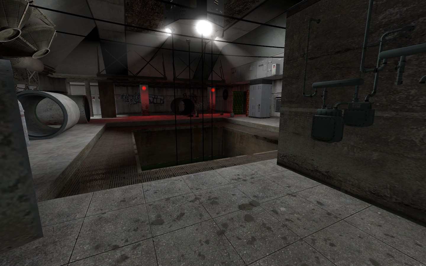 Map design was improvised as development progressed, with the levels built in the Hammer Editor. Since I had little to no custom models I had to use geometry blocks to add variety to maps, as well as attempted to fit in existing HL2 decals & models into the mod’s maps.